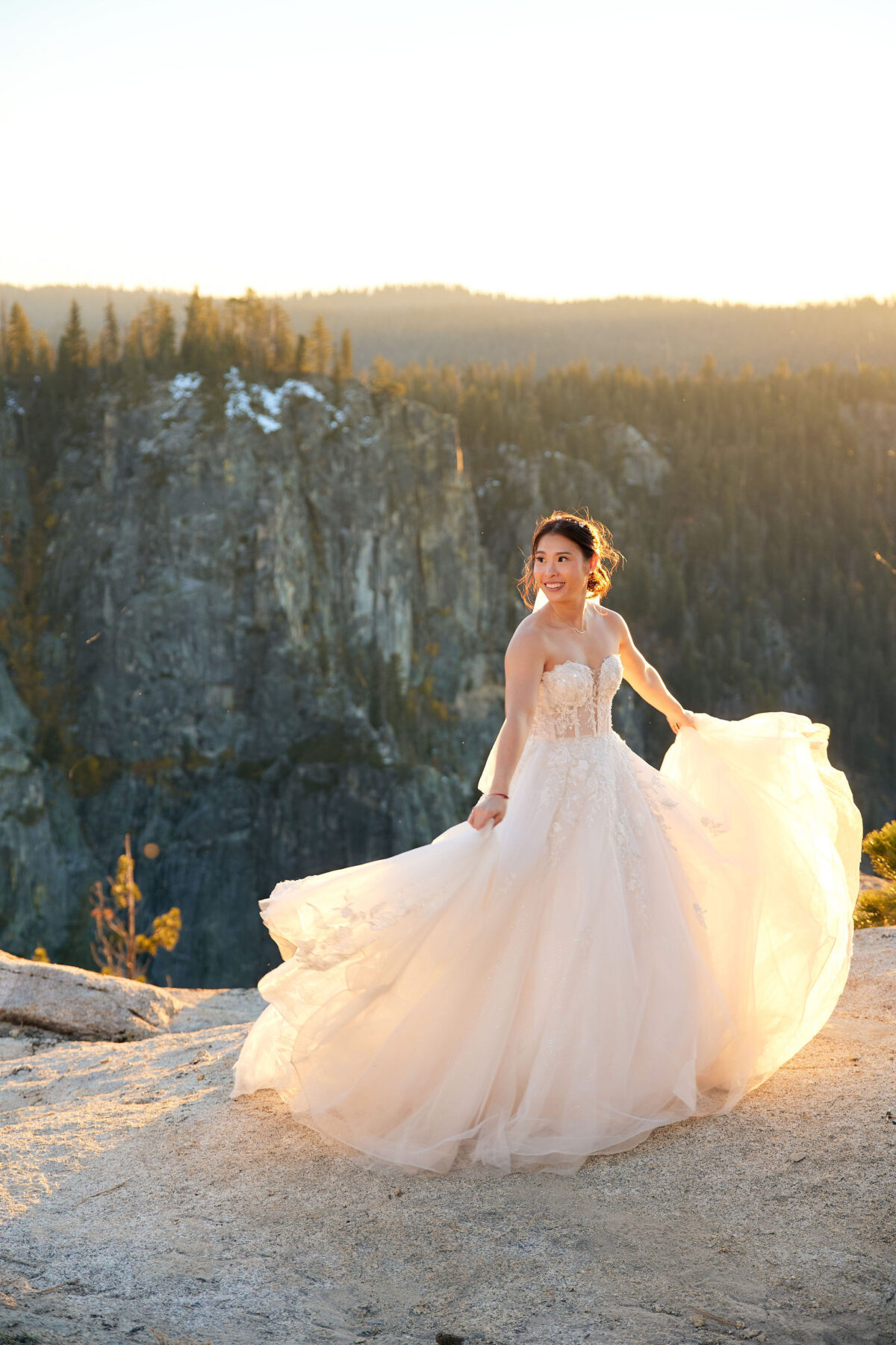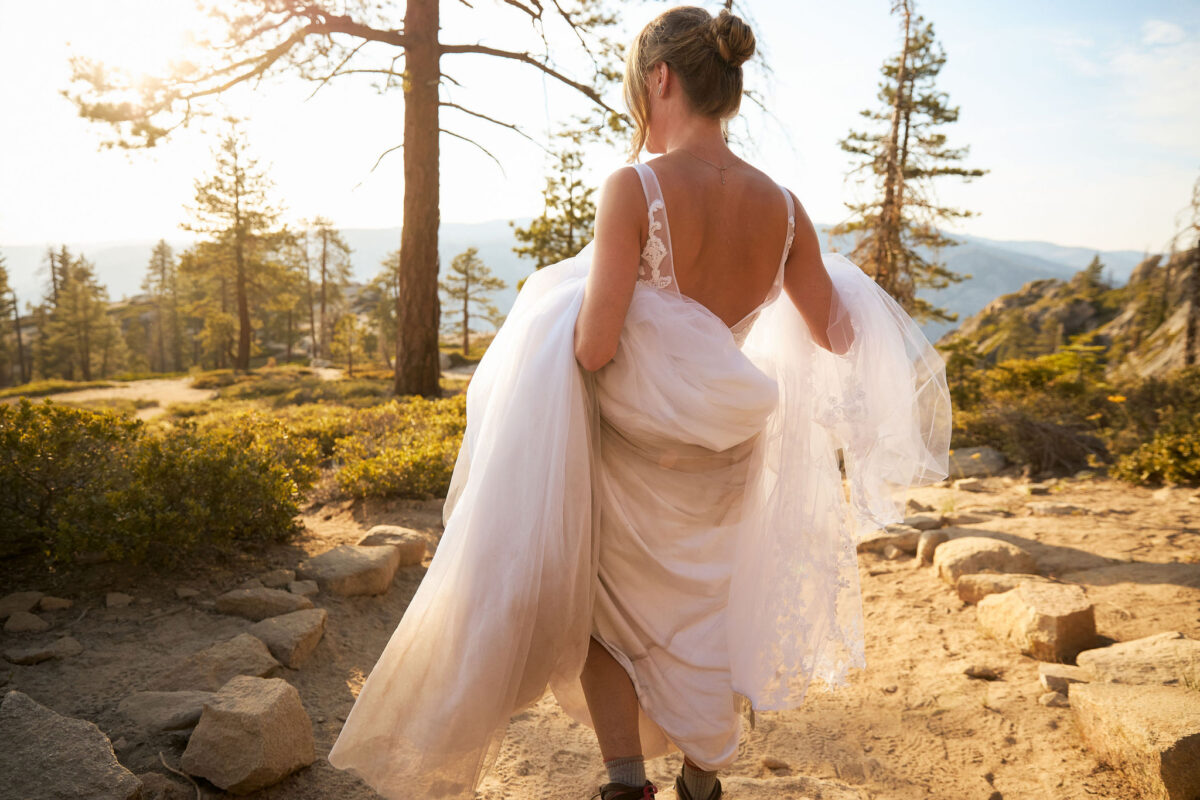 The trail leading up to this spot is also pretty photogenic, one of our favorite ones in all of Yosemite. Most of our couples will hike the whole time in their wedding attire, and it’s 100% worth it.